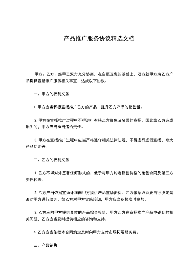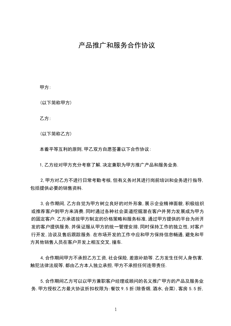 1,乙方经对甲方充分考察了解,决定兼职为甲方推广产品和服务业务.