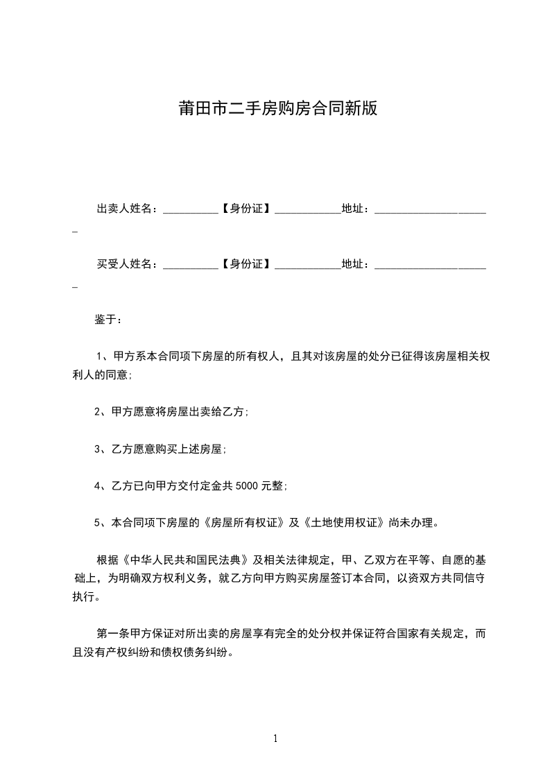 根据《中华人民共和国民法典》及相关法律规定,甲、乙双方在平等、自愿的基础上,为明确双方权利义务,就乙方向甲方购买房屋签订本合同,以资双方共同信守执行。