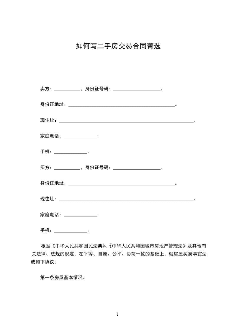 根据《中华人民共和国民法典》、《中华人民共和国城市房地产管理法》及其他有关法律、法规的规定,在平等、自愿、公平、协商一致的基础上,就房屋买卖事宜达成如下协议: