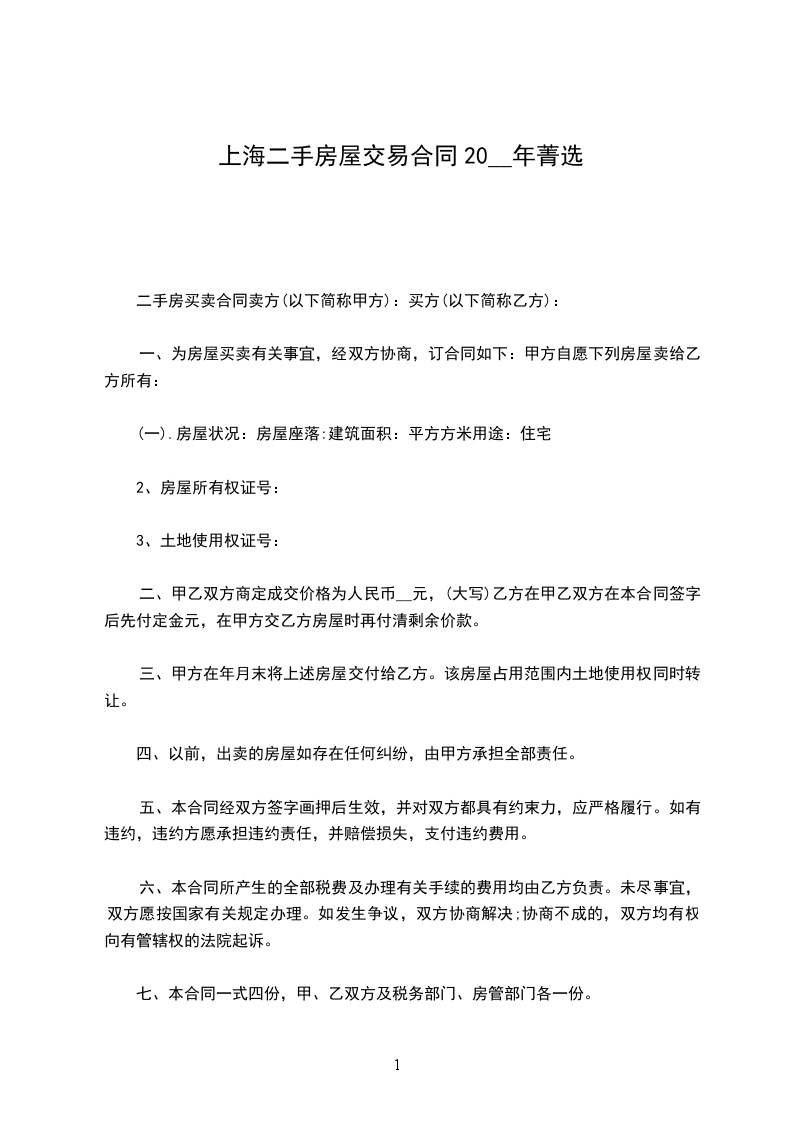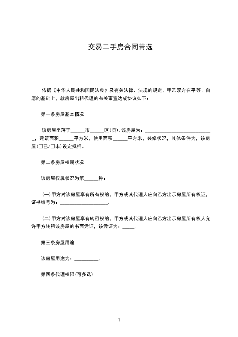 (一)经买卖双方协商一致,该房屋成交价格为:人民币________元(小写),_______元整(大写)。