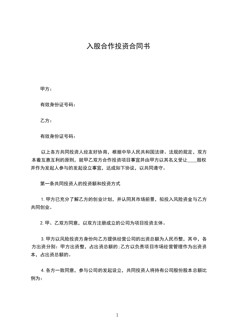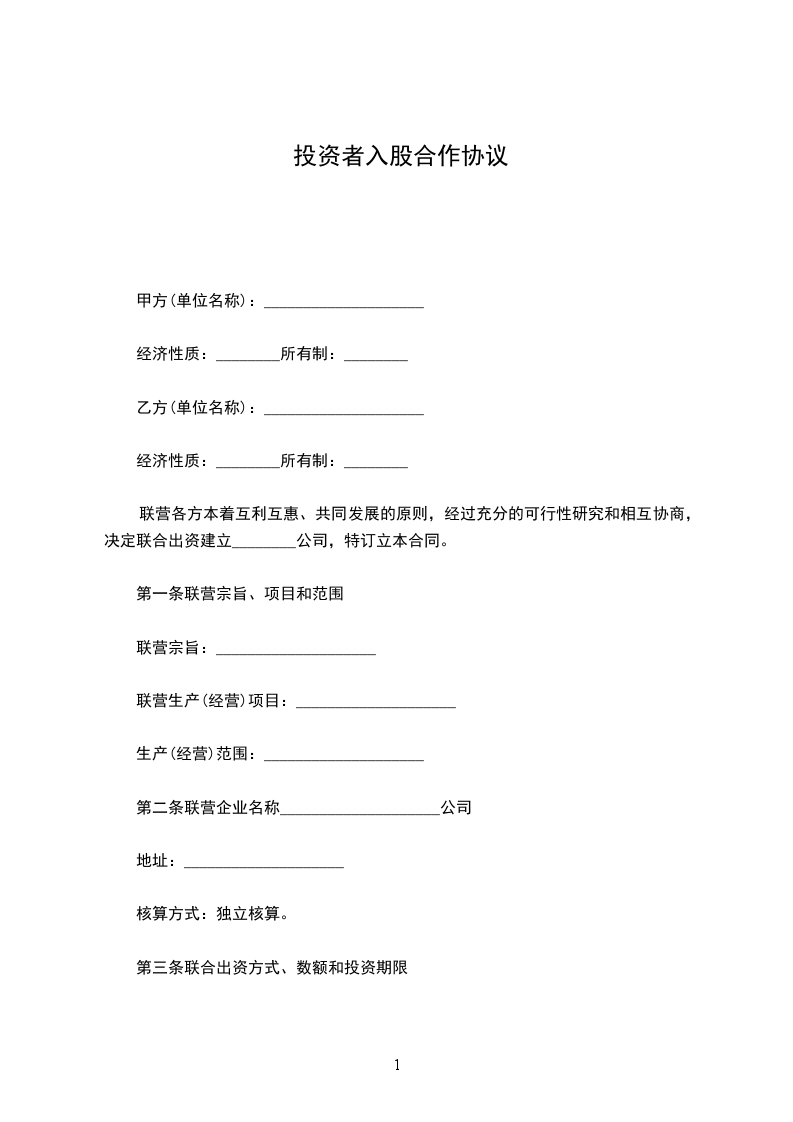 联营各方本着互利互惠、共同发展的原则,经过充分的可行性研究和相互协商,决定联合出资建立________公司,特订立本合同。