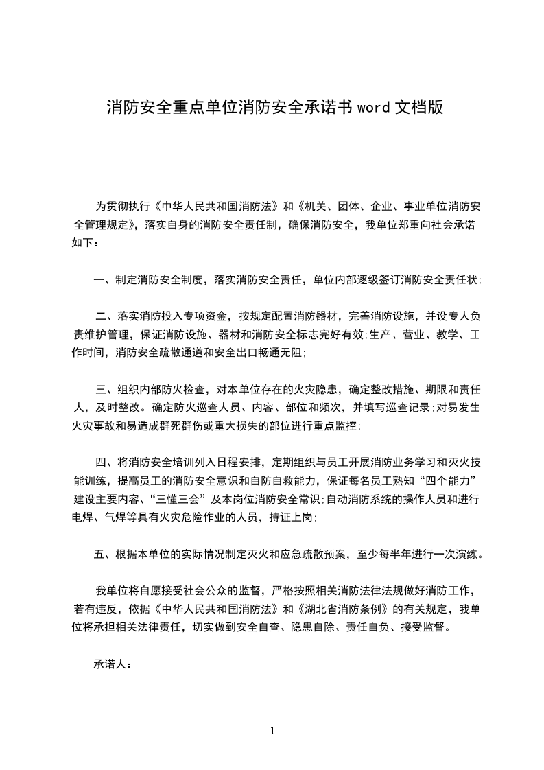 为贯彻执行《中华人民共和国消防法》和《机关、团体、企业、事业单位消防安全管理规定》,落实自身的消防安全责任制,确保消防安全,我单位郑重向社会承诺如下: