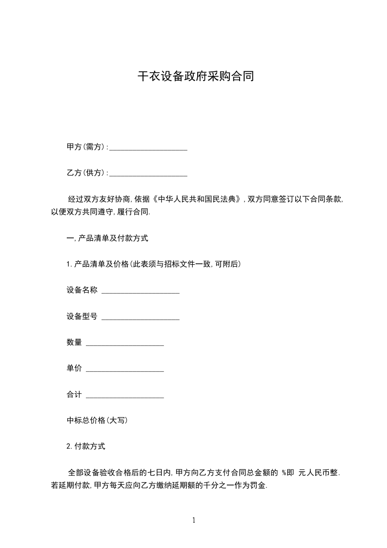 1.交货时间: (投标文件承诺时间).若延期交货,乙方每天应向甲方缴纳延期额的千分之一作为罚金.