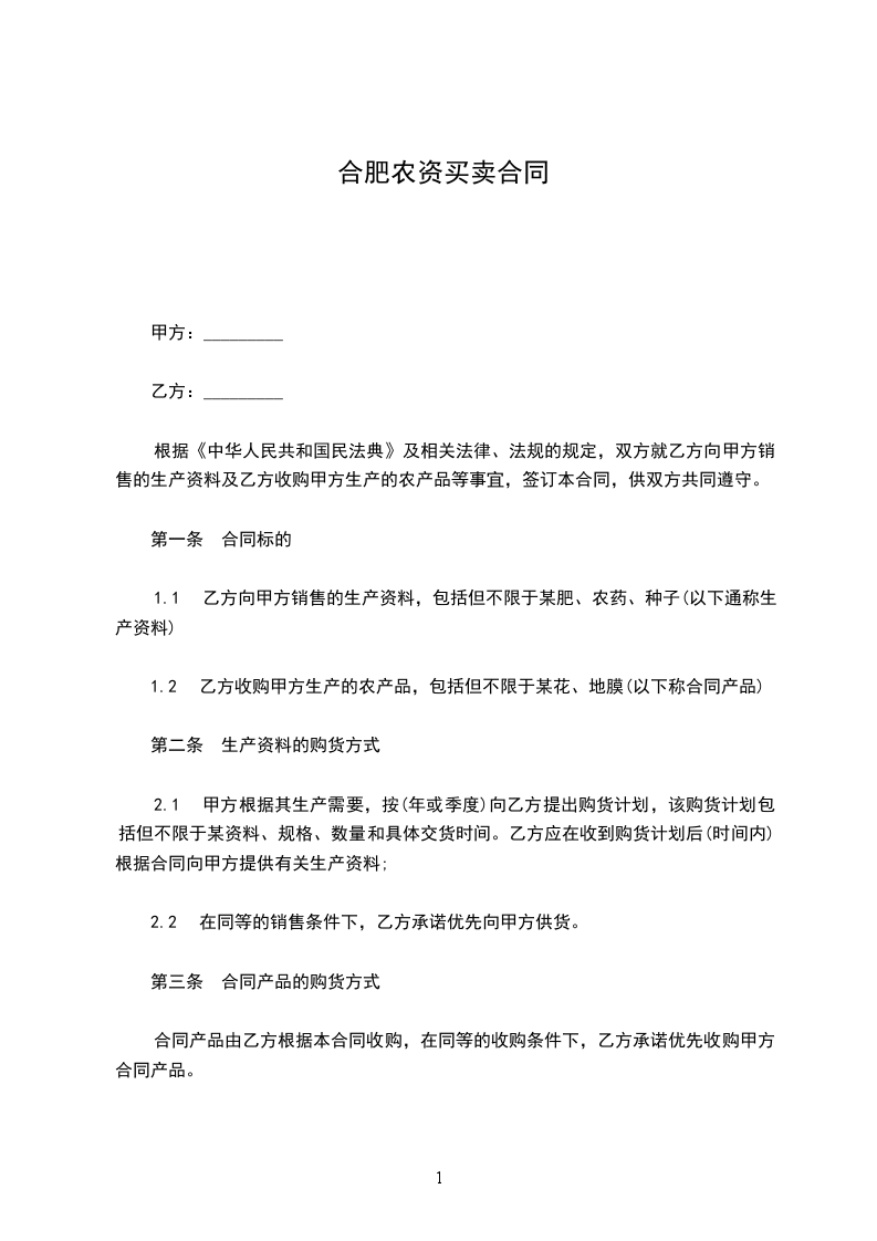 根据《中华人民共和国民法典》及相关法律、法规的规定,双方就乙方向甲方销售的生产资料及乙方收购甲方生产的农产品等事宜,签订本合同,供双方共同遵守。