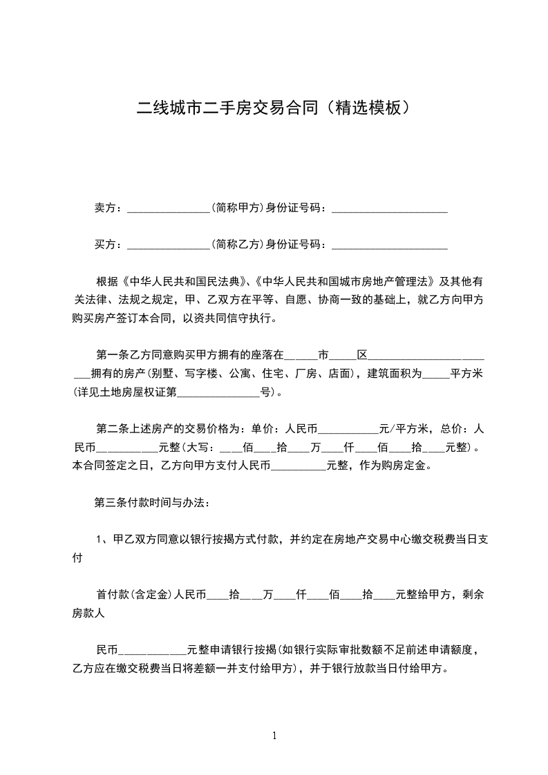 甲乙双方商定成交价格为人民币________元,(大写)_____佰_____拾_____万_____仟_____佰_____拾元整。