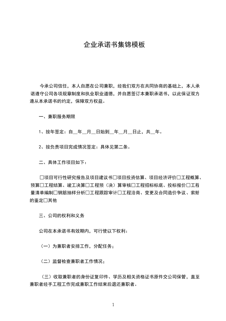 本人_________,于_____年_____月_____日入职,在__________________公司_____部门任职_____岗位,为明确本人在工作期间之责任和职业道德,我愿向公司做出以下承诺: