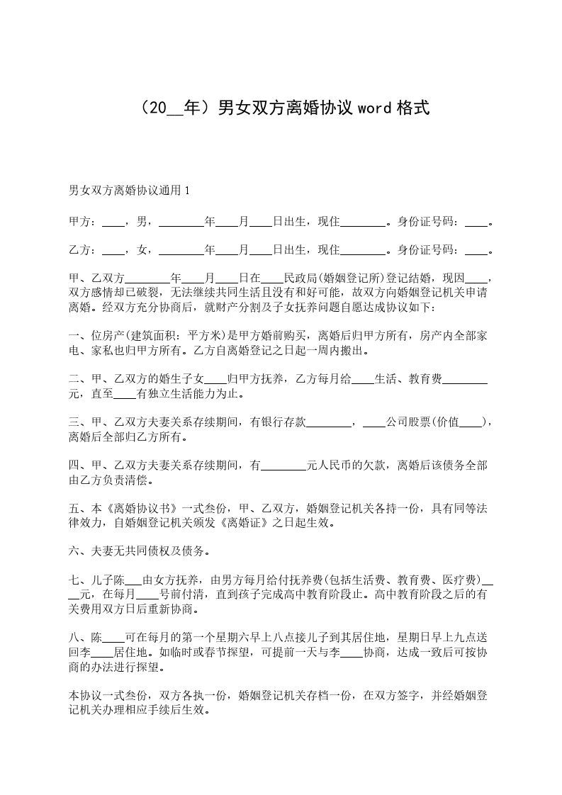 男方与女方_____年___月___日在_____区民政局登记结婚,_____年___月___日生育一女,取名、_____年___月___日生育一子,取名___月___日,现均已成年。