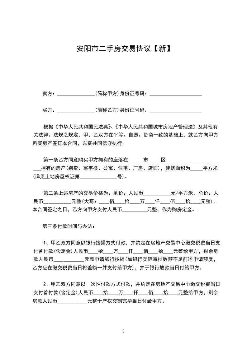 2、甲乙双方同意以一次性付款方式付款,并约定在房地产交易中心缴交税费当日支付首付款(含定金)人民币____拾____万____仟____佰____拾____元整给甲方,剩余房款人民币____________元整于产权交割完毕当日付给甲方。