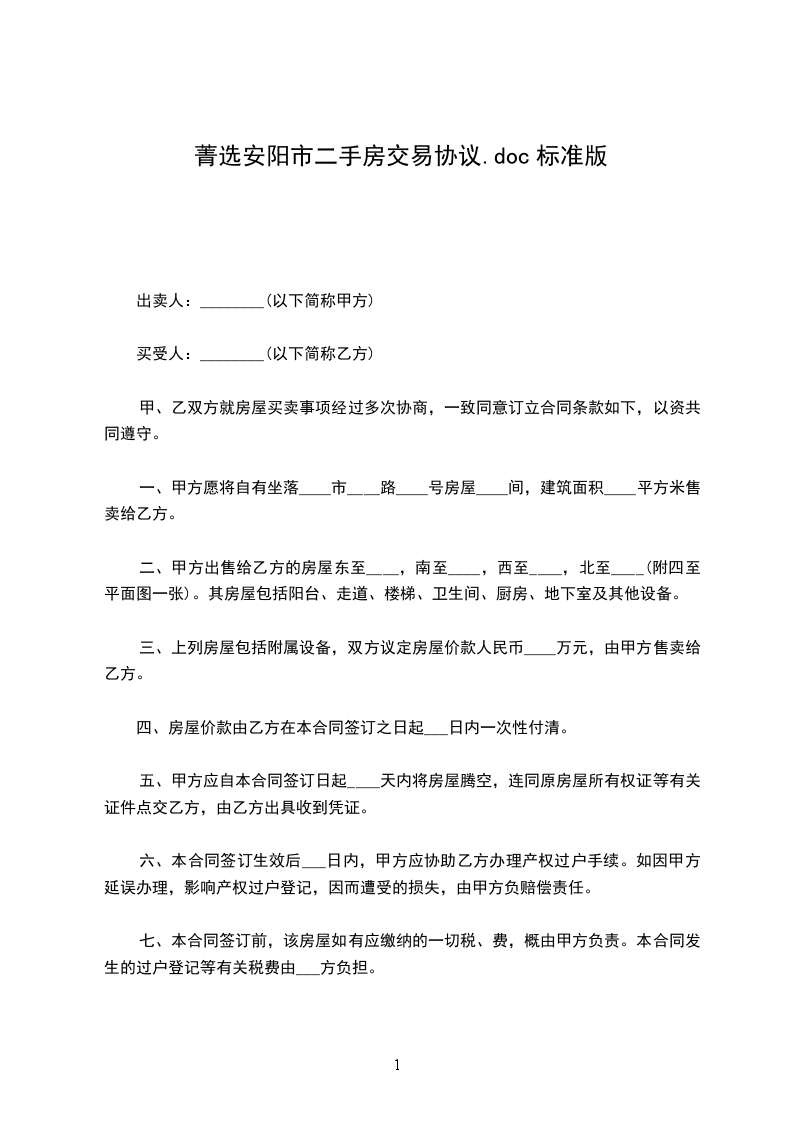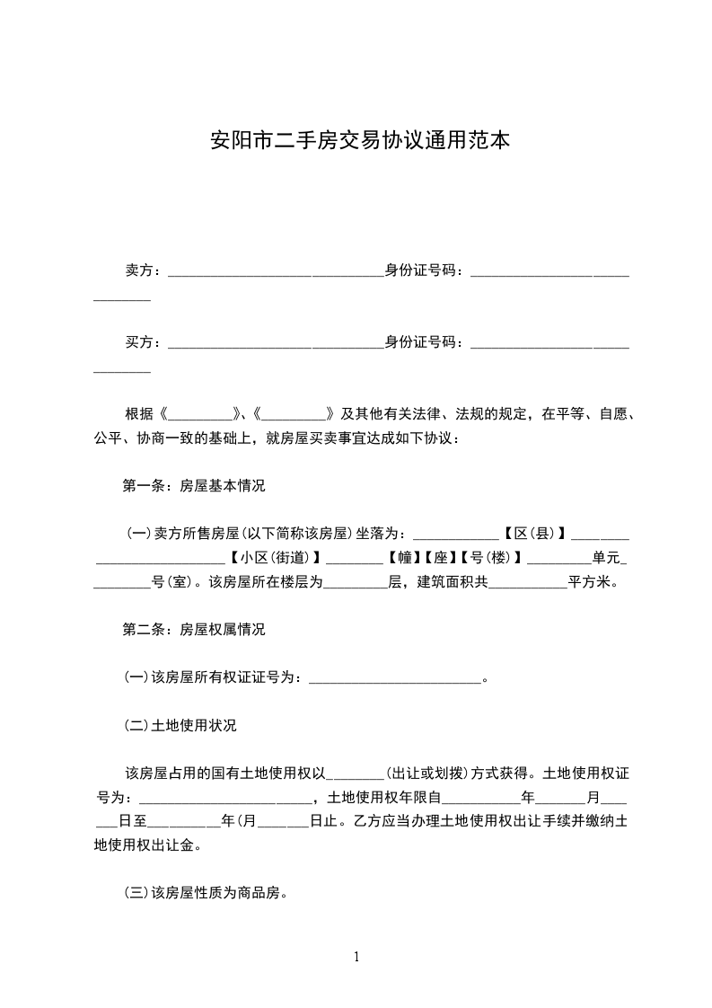 第一条乙方同意购买甲方拥有的座落在______市_____区________________________拥有的房产(别墅、写字楼、公寓、住宅、厂房、店面),建筑面积为_____平方米。(详见土地房屋权证第_______________号)。