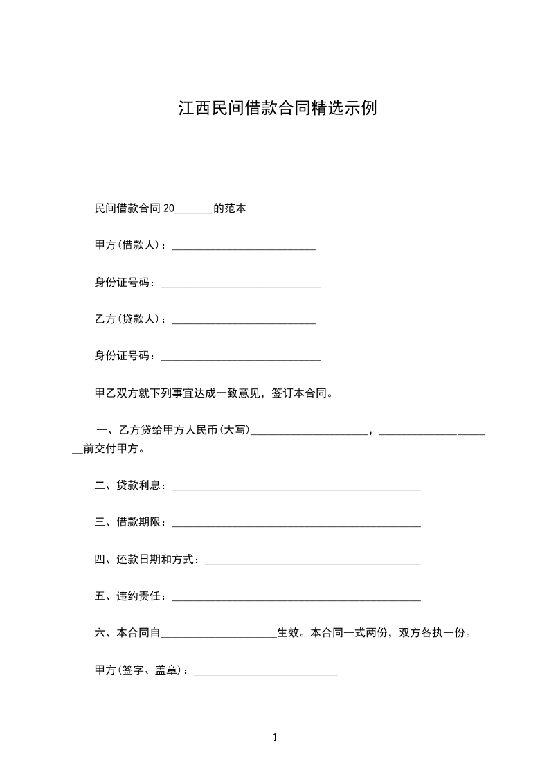 民间借款合同20_______的范本