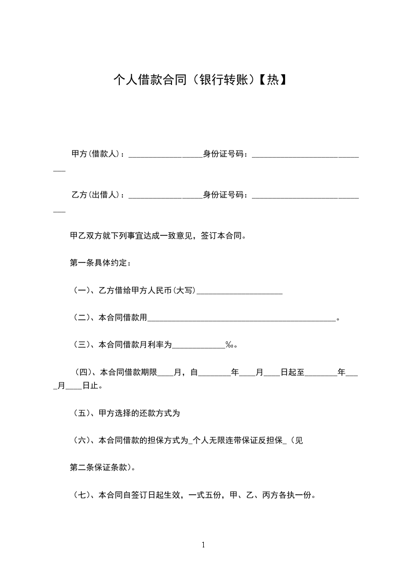 (六)合同借款的担保方式为:个人无限连带保证反担保(见