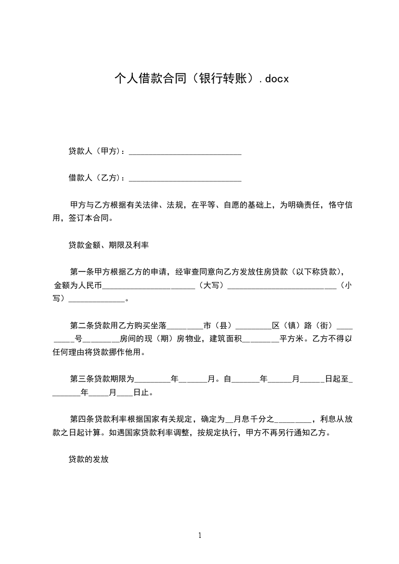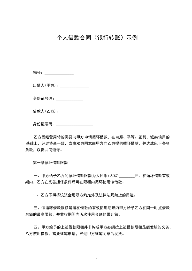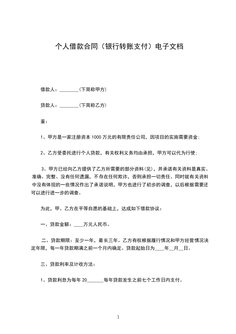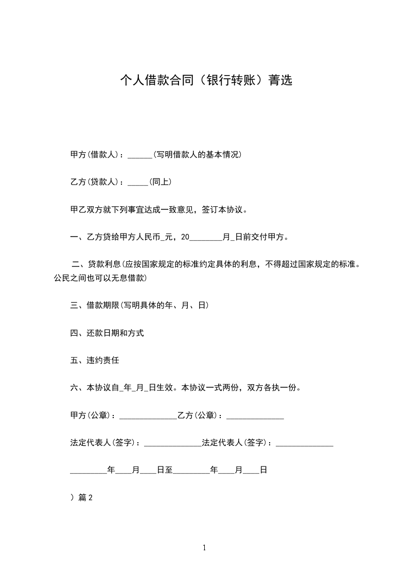 (一)乙方借给甲方_________人民币(大写)