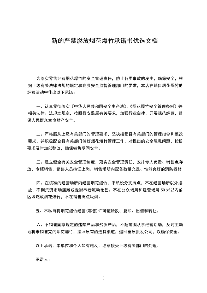 为落实零售经营烟花爆竹的安全管理责任,防止各类事故的发生,确保安全,根据上级有关法律法规的规定和我县安全监督管理部门的要求,本店在销售烟花爆竹的经营活动中作出以下承诺: