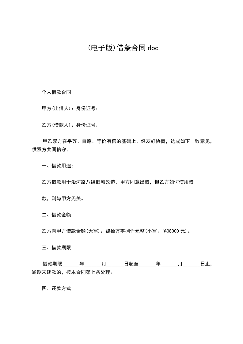 个人借款合同