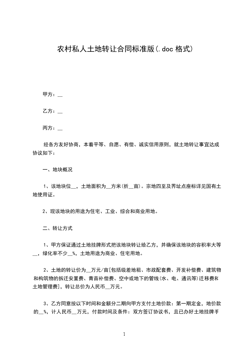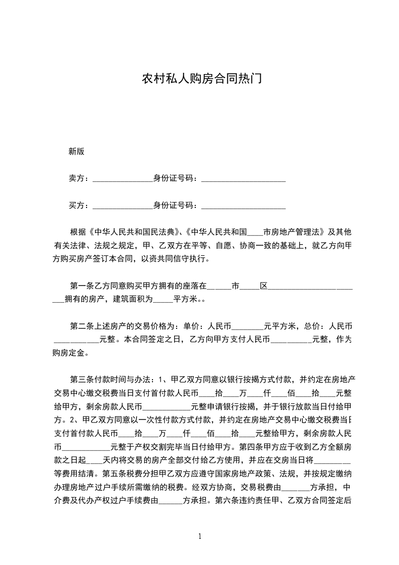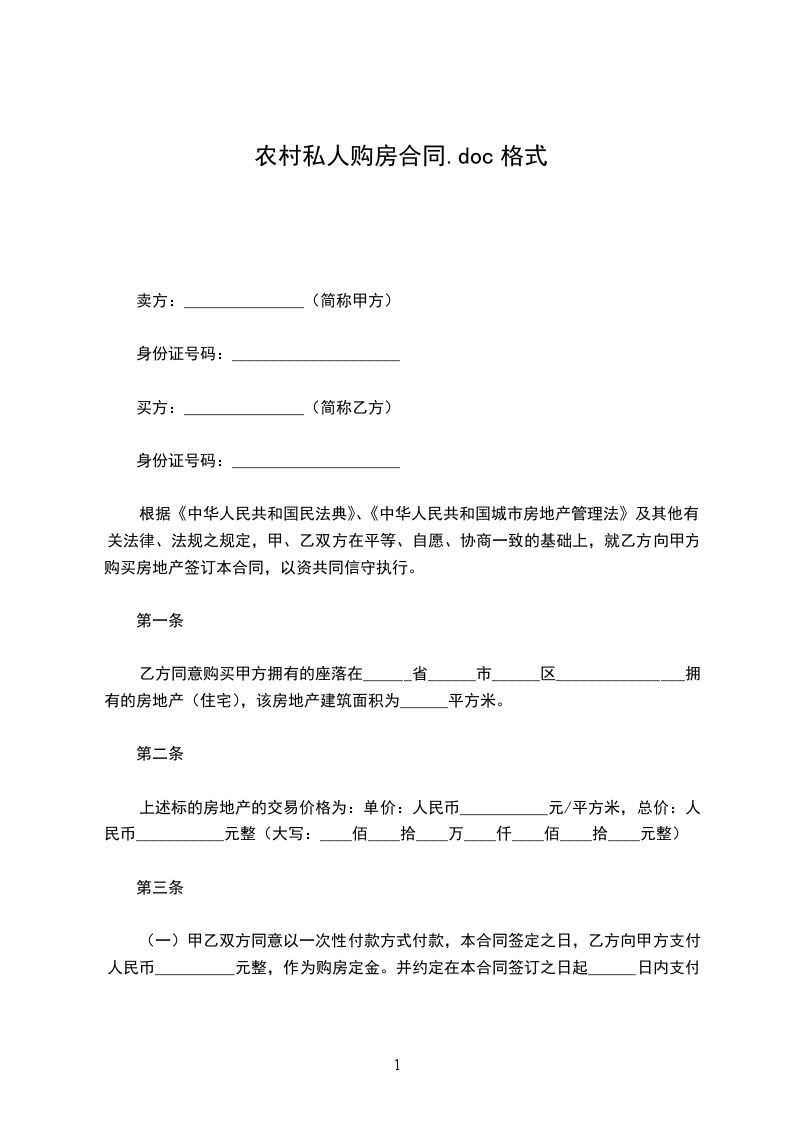 上述标的房地产的交易价格为:单价:人民币___________元/平方米,总价:人民币___________元整(大写:____佰____拾____万____仟____佰____拾____元整)