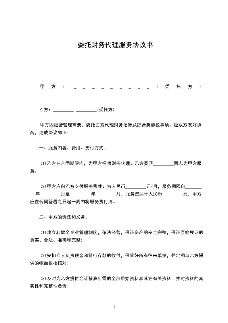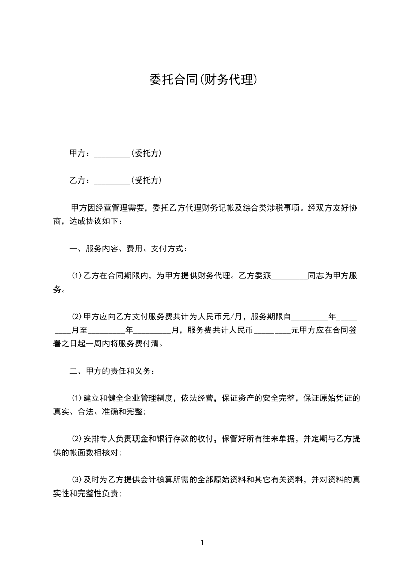 (1)乙方在合同期限内,为甲方提供财务代理。乙方委派_________同志为甲方服务。