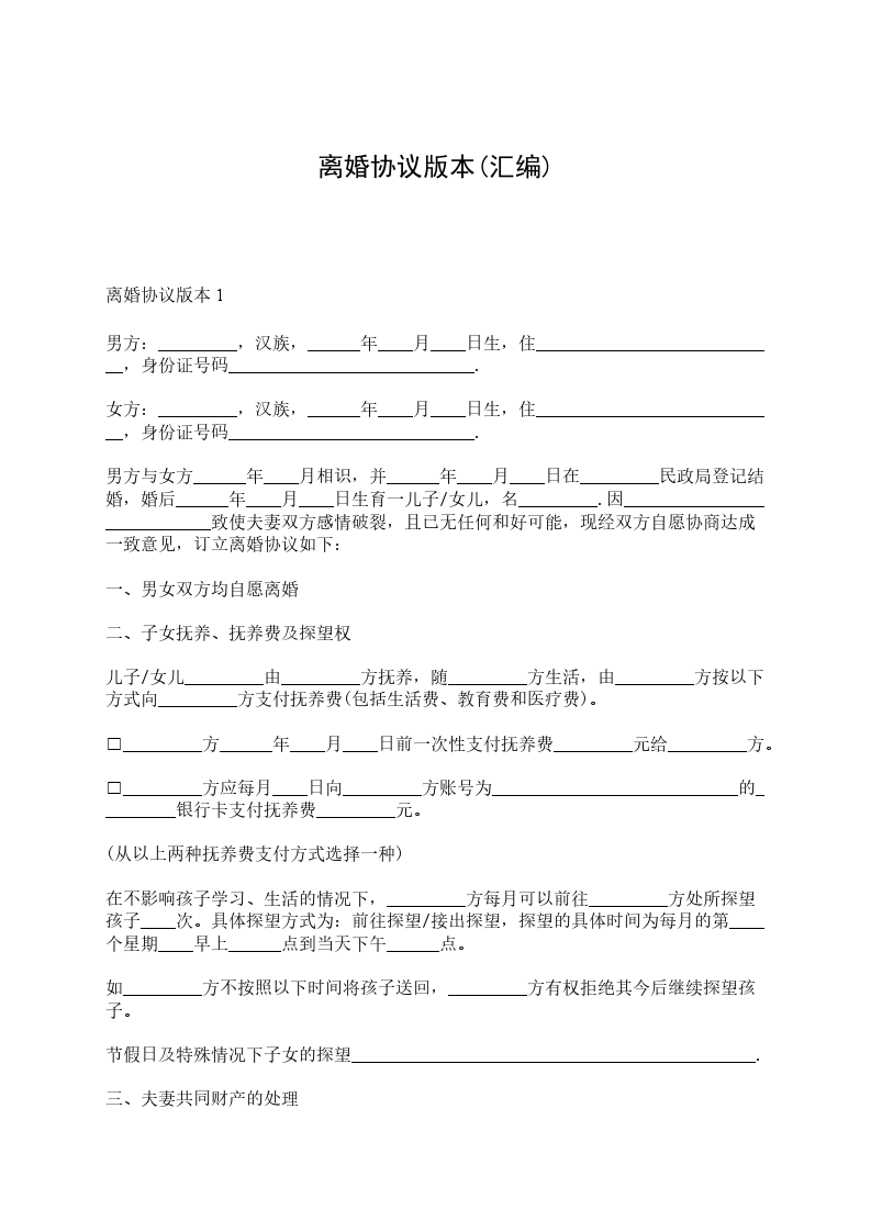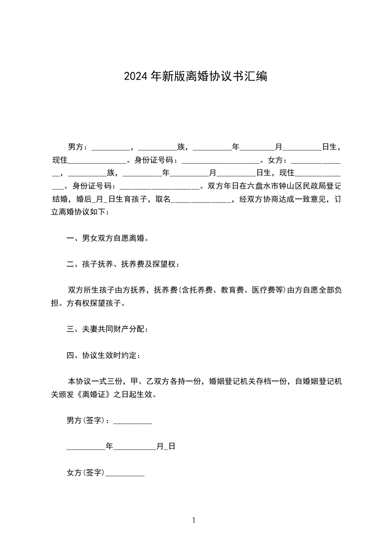 六、本离婚协议一式叁份,双方各执一份,婚姻登记机关存档一份,在双方签字,并经婚姻登记机关办理相应手续后生效。