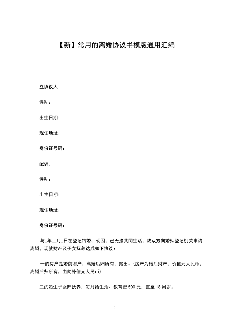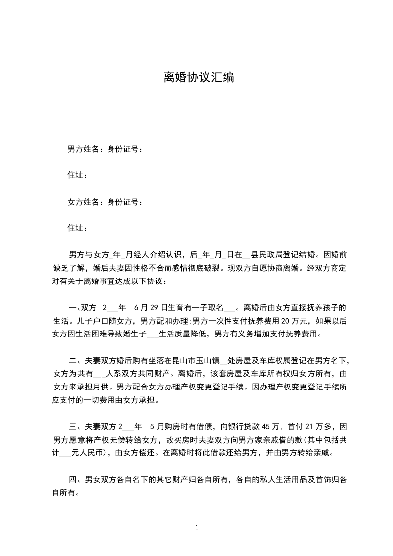 协议人:某某,女,__年__月__日出生,住市路号。