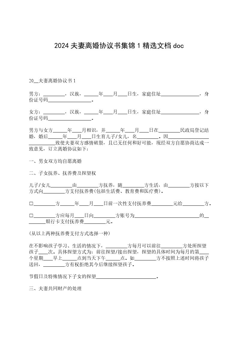 2___年夫妻离婚协议书男方:______,汉族,生______年______月______日,身份证号码:__________________;
