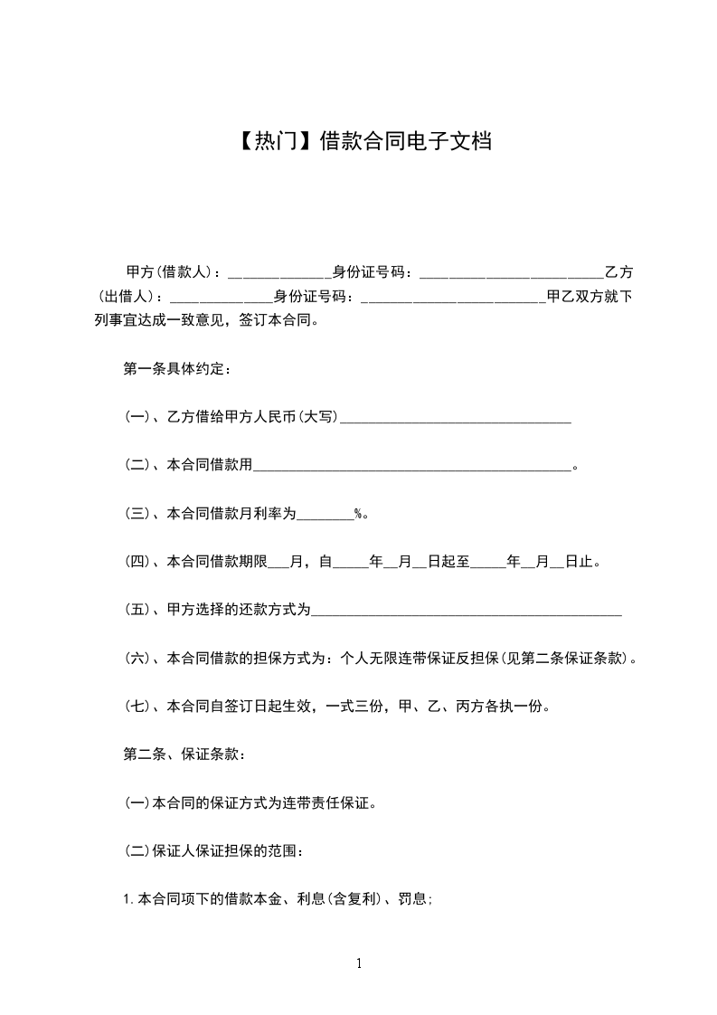 (一)本合同的保证方式为连带责任保证。