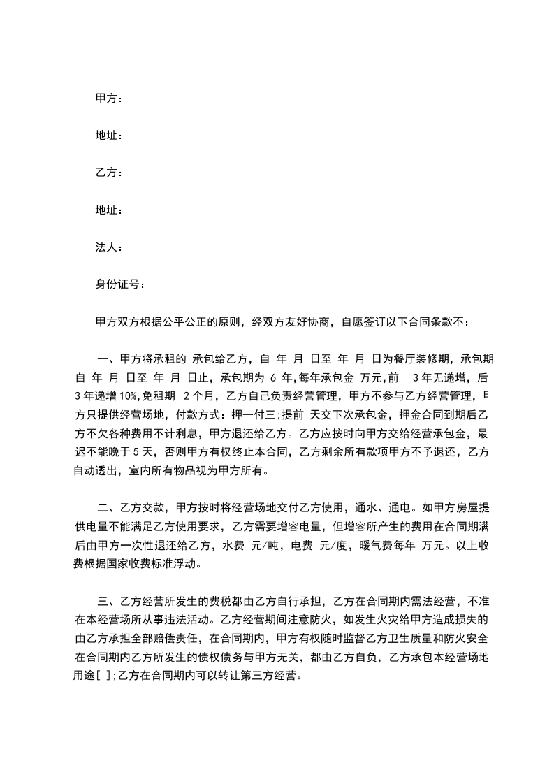 5、乙方在经营过程中应遵守所在地的乡规民约,积极维护安全、稳定。