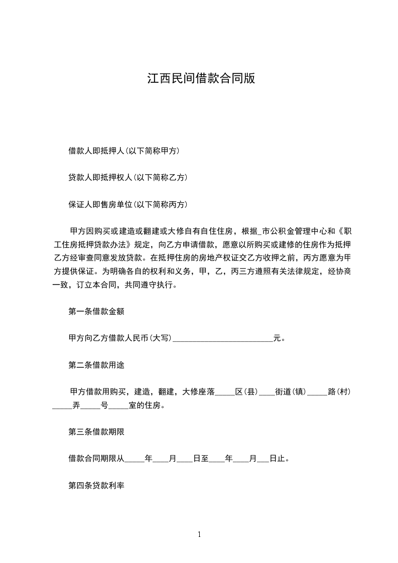 一、乙方贷给甲方人民币(大写)_____________________,_____________________前交付甲方。