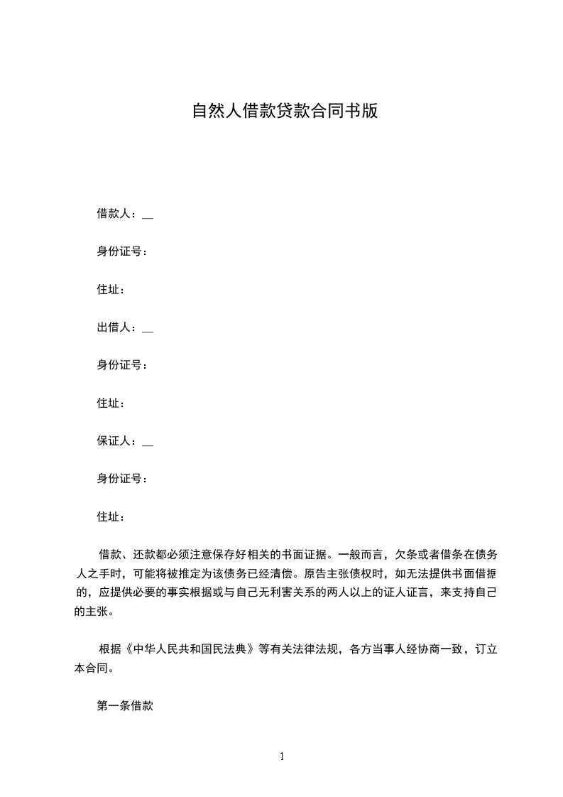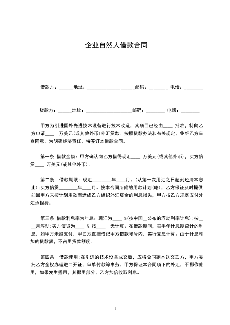 借款人:__(“乙方”)身份证号:地址: