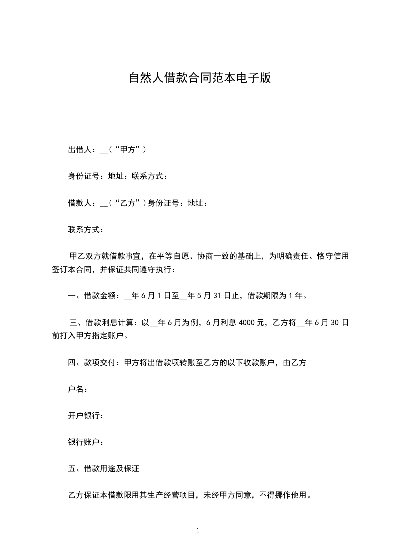 三、借款利息计算:以__年6月为例,6月利息4000元,乙方将__年6月30日前打入甲方指定账户。