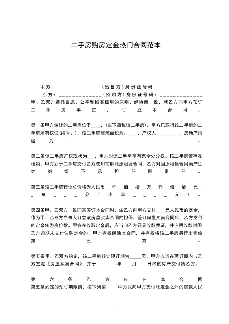 第三条:乙方同意签订本合同时,向甲方支付人民币__万元的购房定金,作为甲、乙双方当事人订立该房屋买卖合同的担保,签订房屋买卖合同后,乙方支付的定金转为房价款。