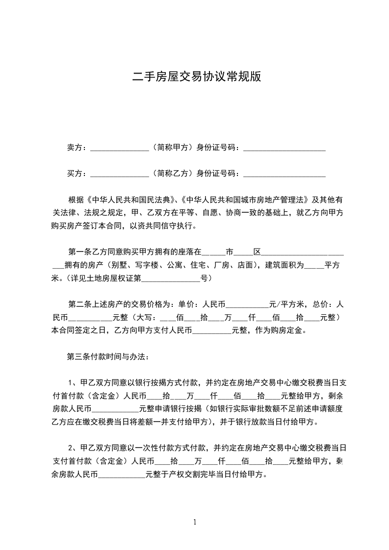 第一条乙方同意购买甲方拥有的座落在______市_____区________________________拥有的房产(别墅、写字楼、公寓、住宅、厂房、店面),建筑面积为_____平方米。(详见土地房屋权证第_______________号)