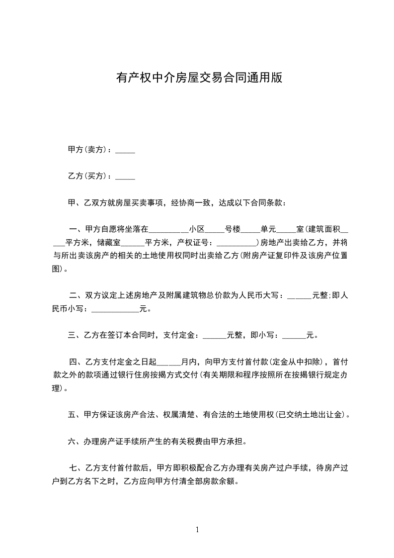 八、甲方应在______月前将该房产交付乙方;届时该房产应无任何担保、抵押、房产瑕疵,无人租住、使用;无欠账,如电话费、水电费、物业管理费、取暖费、入网费、有线电视费等。