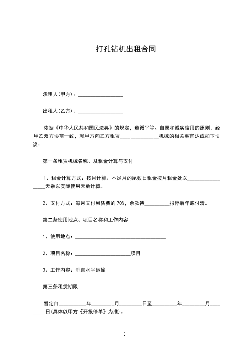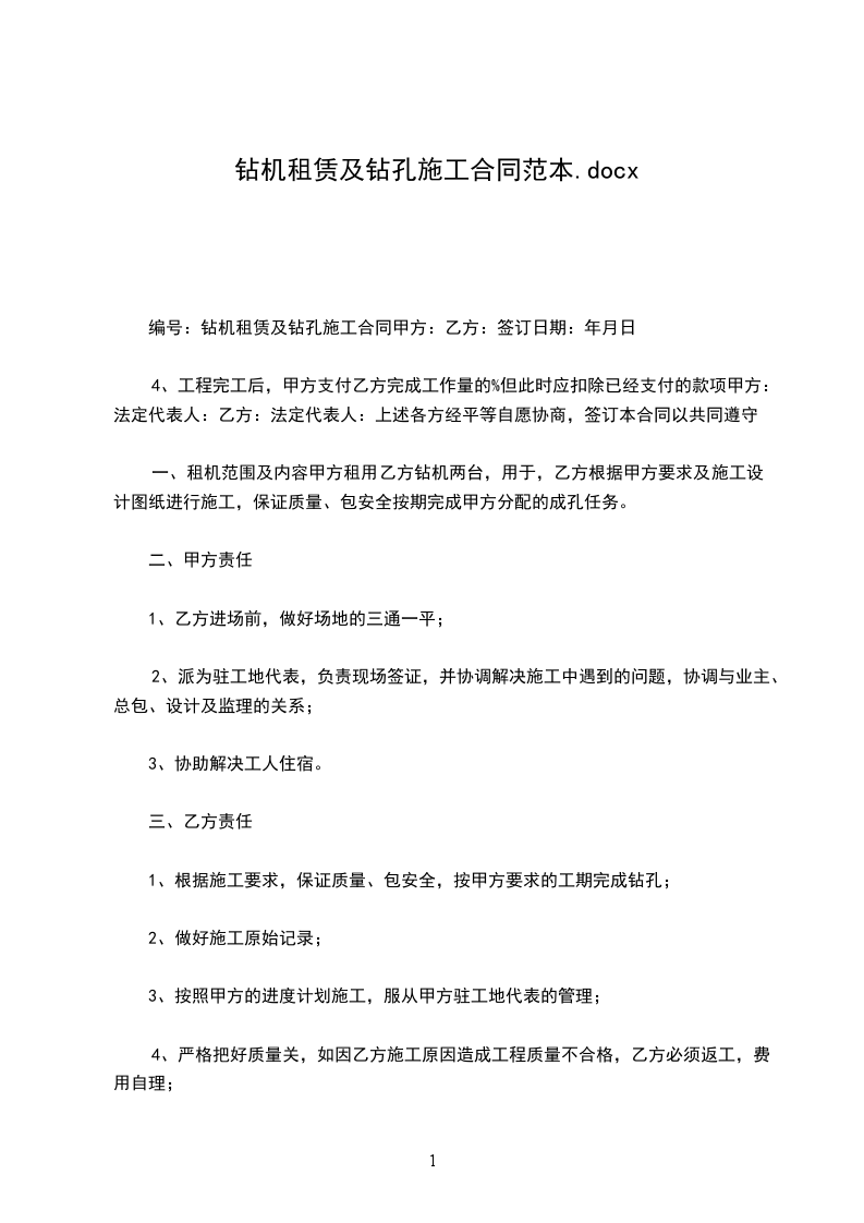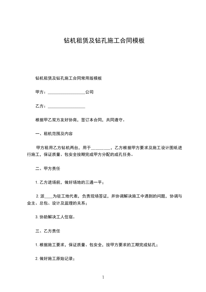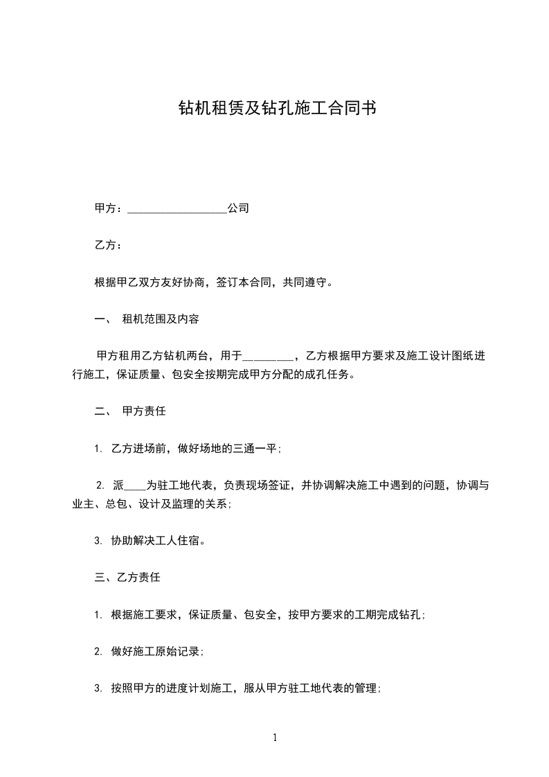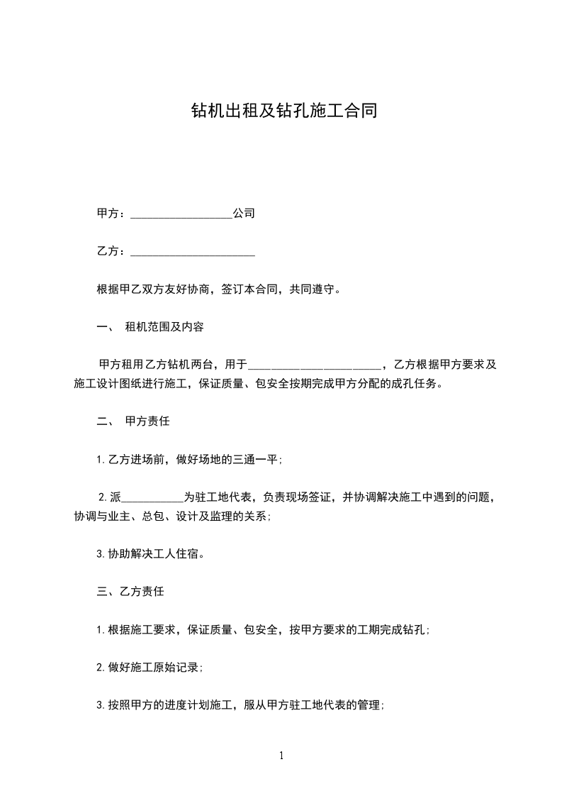 甲方租用乙方钻机两台,用于_______________________,乙方根据甲方要求及施工设计图纸进行施工,保证质量、包安全按期完成甲方分配的成孔任务。