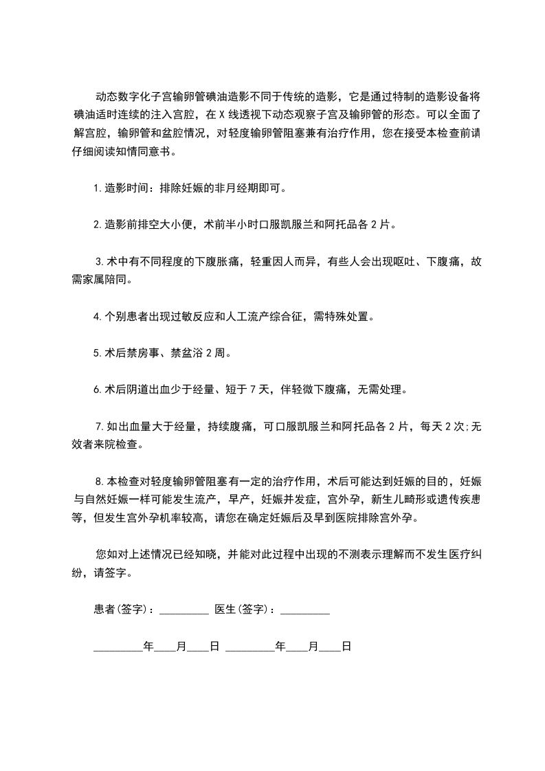 8.本检查对轻度输卵管阻塞有一定的治疗作用,术后可能达到妊娠的目的,妊娠与自然妊娠一样可能发生流产,早产,妊娠并发症,宫外孕,新生儿畸形或遗传疾患等,但发生宫外孕机率较高,请您在确定妊娠后及早到医院排除宫外孕。