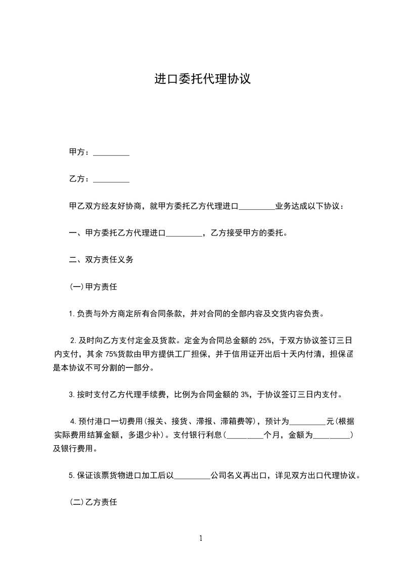 甲乙双方经友好协商,就甲方委托乙方代理进口_________业务达成以下协议: