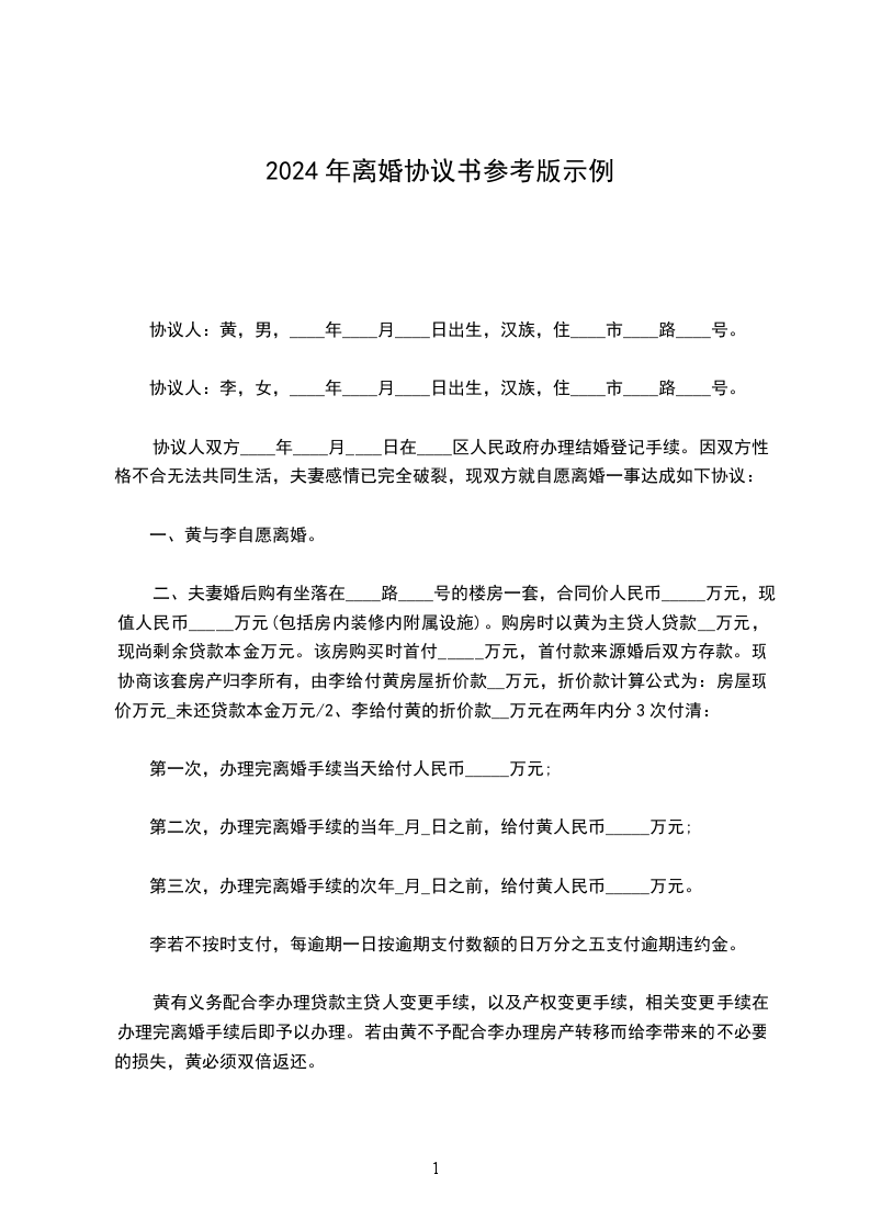 协议人:黄,男,____年____月____日出生,汉族,住____市____路____号。
