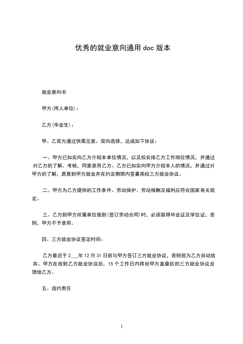 就业意向书