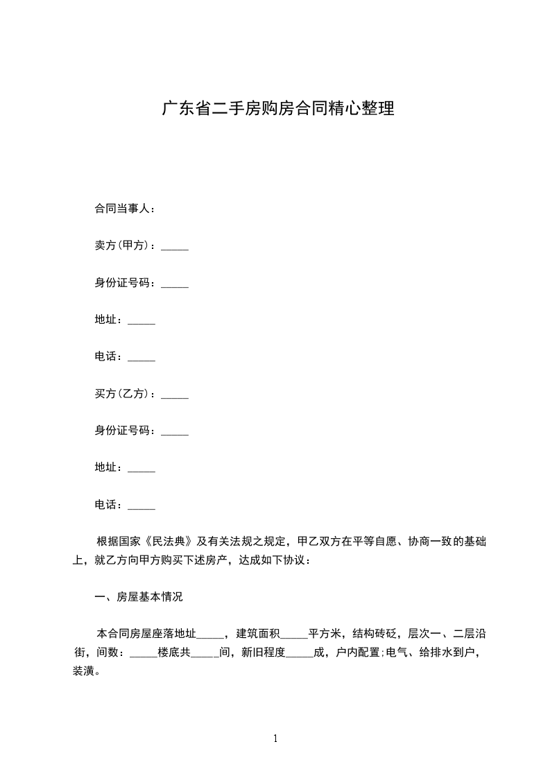 根据国家《民法典》及有关法规之规定,甲乙双方在平等自愿、协商一致的基础上,就乙方向甲方购买下述房产,达成如下协议:
