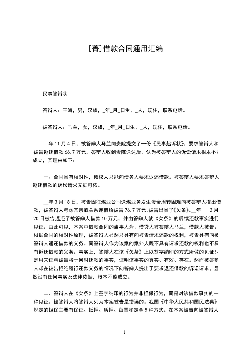 __年11月4日,被答辩人马兰向贵院提交了一份《民事起诉状》,要求答辩人和被告返还借款66.7万元,答辩人收到贵院送达后,认为被答辩人的诉讼请求根本不能成立,其理由如下: