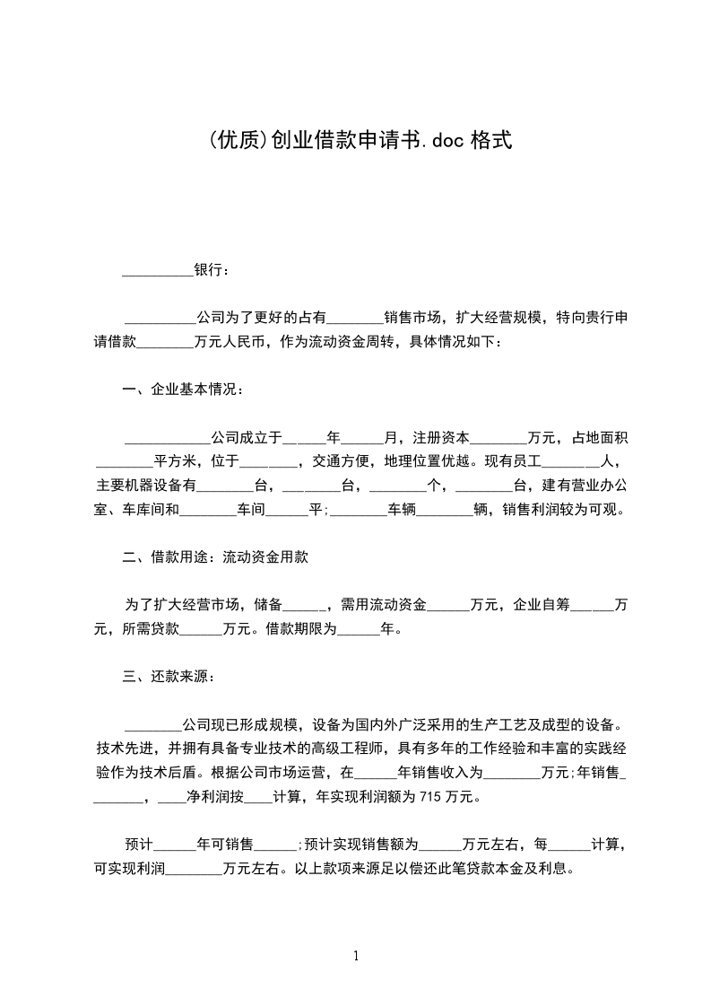 __________公司为了更好的占有________销售市场,扩大经营规模,特向贵行申请借款________万元人民币,作为流动资金周转,具体情况如下: