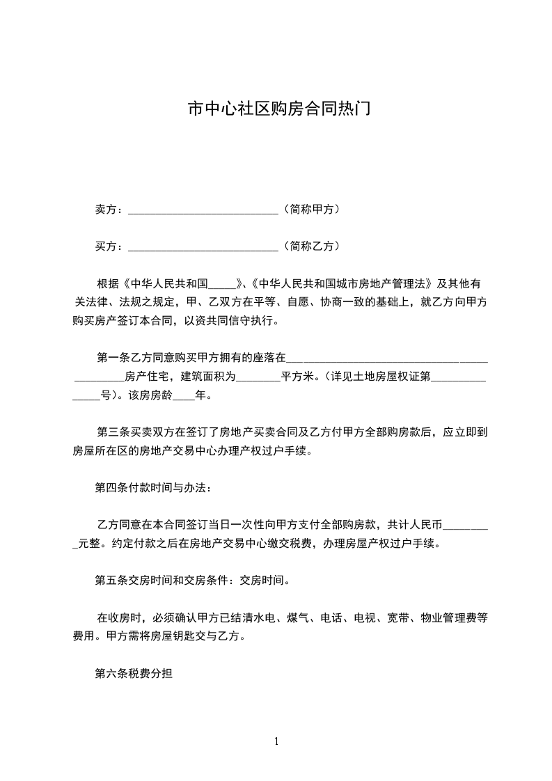 甲方(签章):_____乙方(签章):________年___月___日___年___月___日小区购房合同范本2甲方(出租方)身份证号:乙方(承租方)身份证号:经甲、乙双方在平等、自愿、互利的基础上,友好协商,达成以下协议: