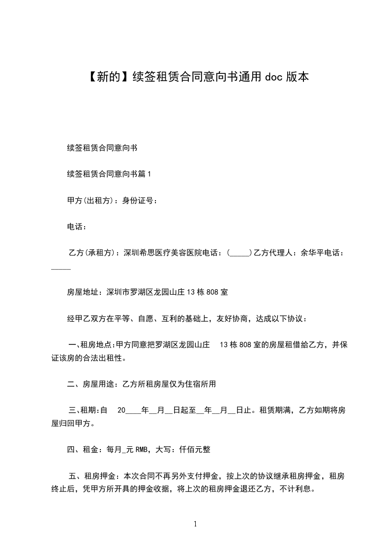 续签租赁合同意向书