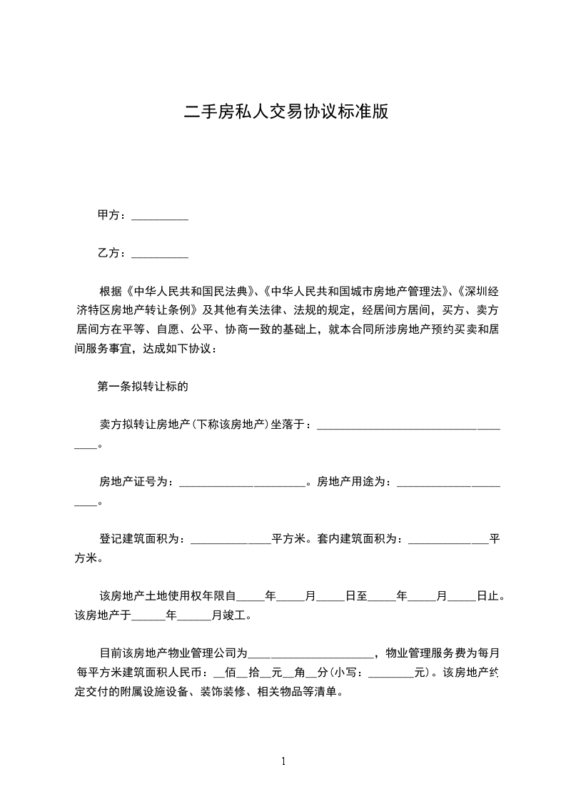 根据《中华人民共和国民法典》、《中华人民共和国城市房地产管理法》、《深圳经济特区房地产转让条例》及其他有关法律、法规的规定,经居间方居间,买方、卖方、居间方在平等、自愿、公平、协商一致的基础上,就本合同所涉房地产预约买卖和居间服务事宜,达成如下协议: