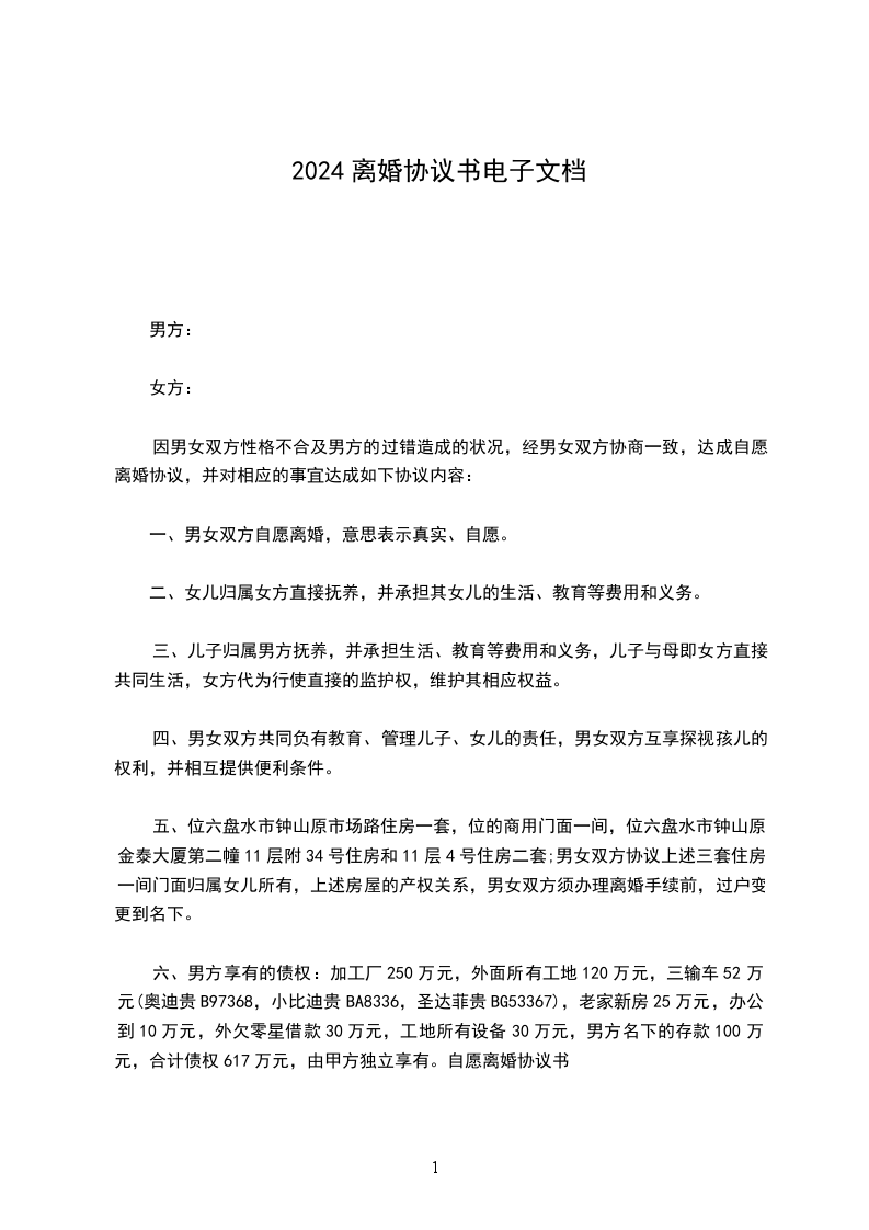 协议人:方某,男,__年_月_日出生,住__市___路___号。协议人:王某,女,__年_月_日出生,住__市___路___号。协议人方某王某双方__年_月_日在__区人民政府办理结婚登记手续。__年_月_日生育儿子___。因协议人双方性格严重不合,无法继续共同生活,夫妻感情且已完全破裂,现双方就自愿离婚一事达成如下协议: