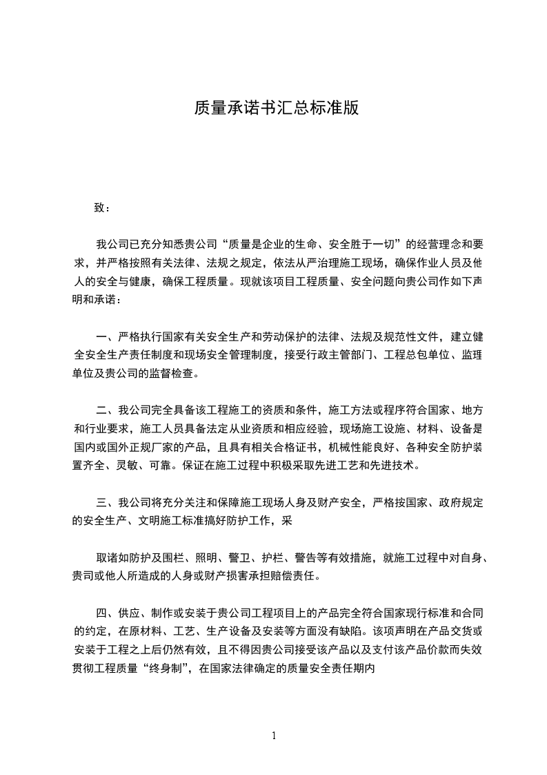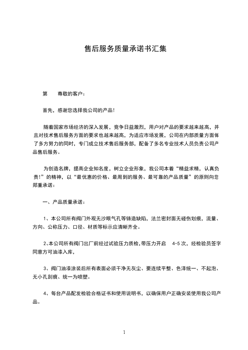 篇4为使贵公司放心使用我方产品,现将我公司产品质量、售后服务等给贵公司一个可靠而有效的承诺:
