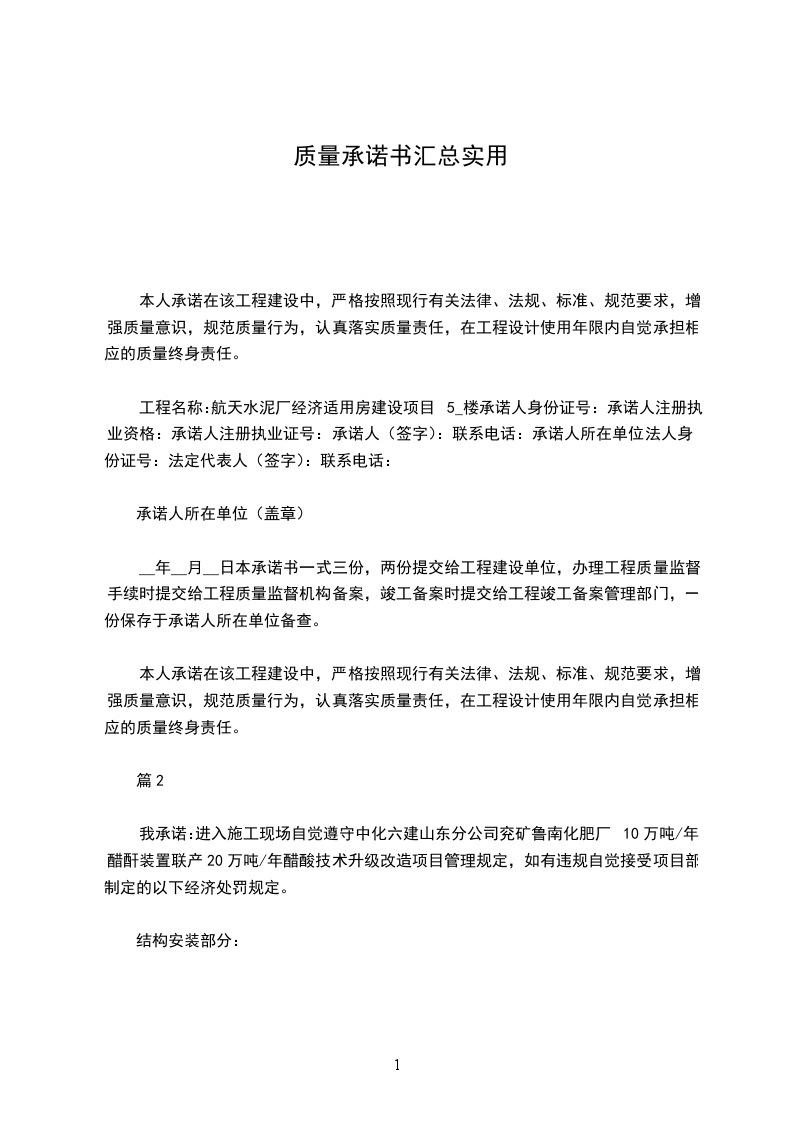 工程名称:航天水泥厂经济适用房建设项目5_楼承诺人身份证号:承诺人注册执业资格:承诺人注册执业证号:承诺人(签字):联系电话:承诺人所在单位法人身份证号:法定代表人(签字):联系电话: