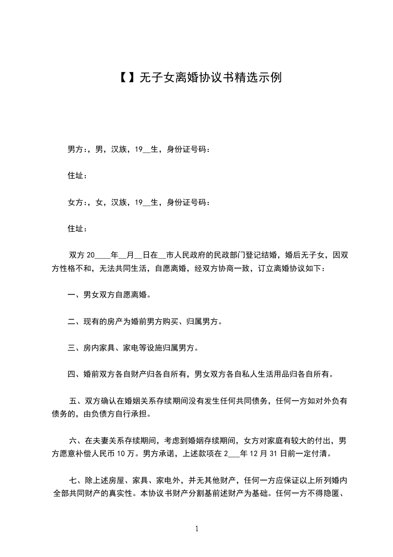 女方:,女,__族,____年__月__日生,住,身份证号码: