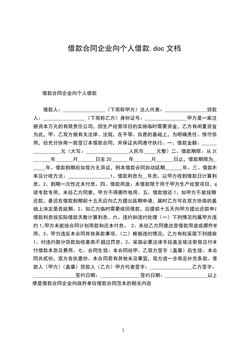 甲方是一家注册资本_____万元的有限责任公司,因生产经营项目的实施临时需要资金,乙方有闲置资金。为此,甲、乙双方根据有关法律、法规,在平等、自愿的基础上,为明确责任、恪守信用,经充分协商一致签订本借款合同,并保证共同遵守执行。