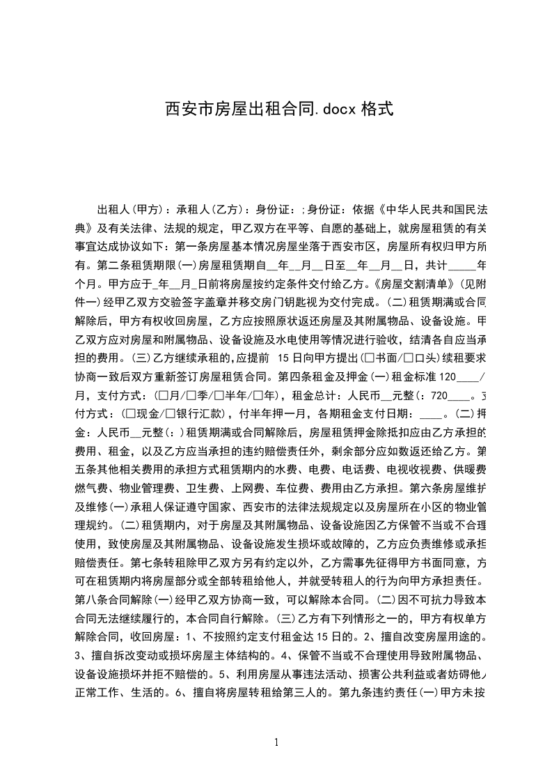 租金每间房为____________元整(¥____________),共计____________元整(¥____________),每年支付一次,且乙方应在缴费前十天付清。
