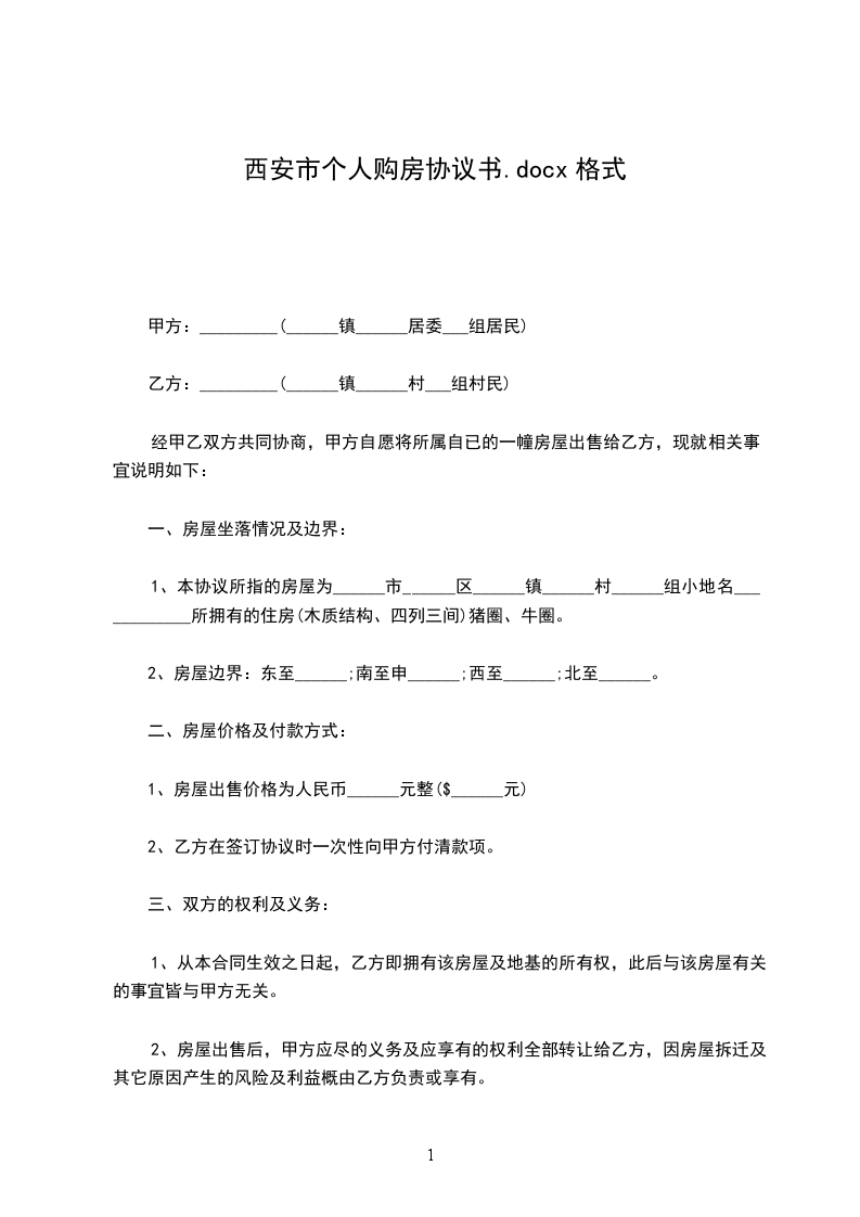 1、本协议所指的房屋为______市______区______镇______村______组小地名____________所拥有的住房(木质结构、四列三间)猪圈、牛圈。