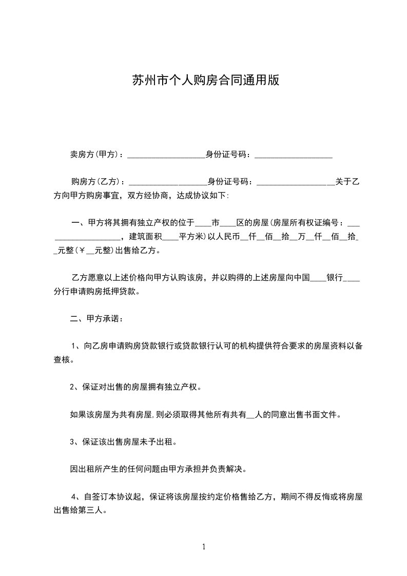一、甲方将其拥有独立产权的位于____市____区的房屋(房屋所有权证编号:___________________,建筑面积____平方米)以人民币__仟__佰__拾__万__仟__佰__拾__元整(¥__元整)出售给乙方。